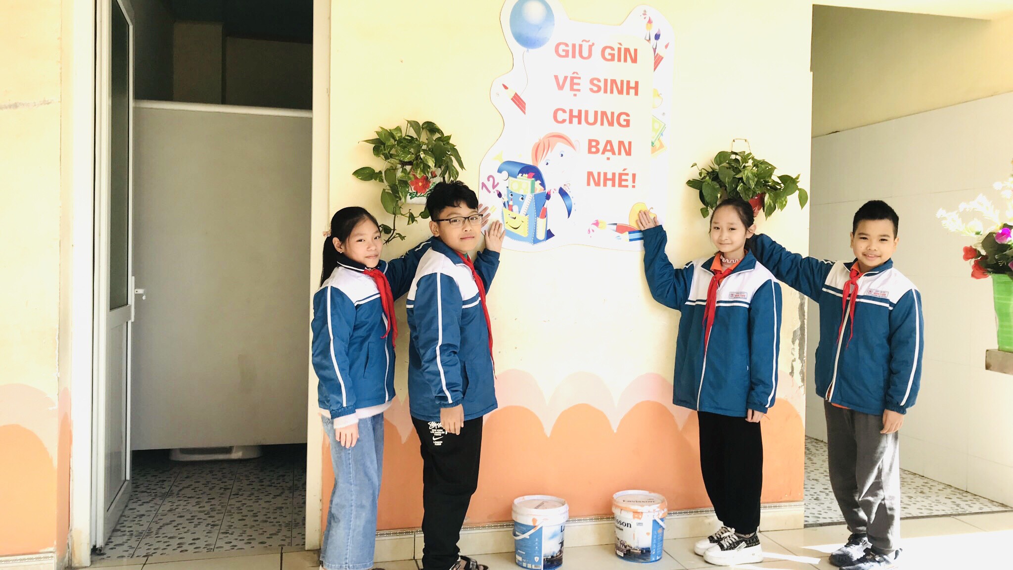 em khoác áo mới cho nhà vệ sinh” đến tất cả các khối lớp và được các em học