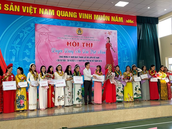 Chào mừng 91 năm ngày thành lập Hội liên hiệp Phụ nữ Việt Nam, 11 năm ngày Phụ nữ Việt Nam 20/10. Công đoàn các trường trên địa bàn phường Quán Toan tổ chức Hội thi Duyên dáng áo dài Việt Nam tại nhà Đa năng trường THCS Quán Toan. Hội thi nhằm tôn vinh vẻ đẹp của người phụ nữ Việt Nam nói chung và vẻ đẹp duyên dáng của các cô giáo trong tà áo dài truyền thống của dân tộc