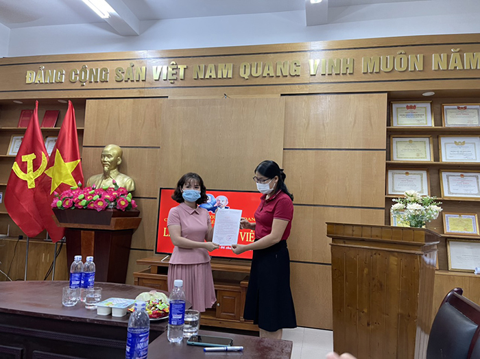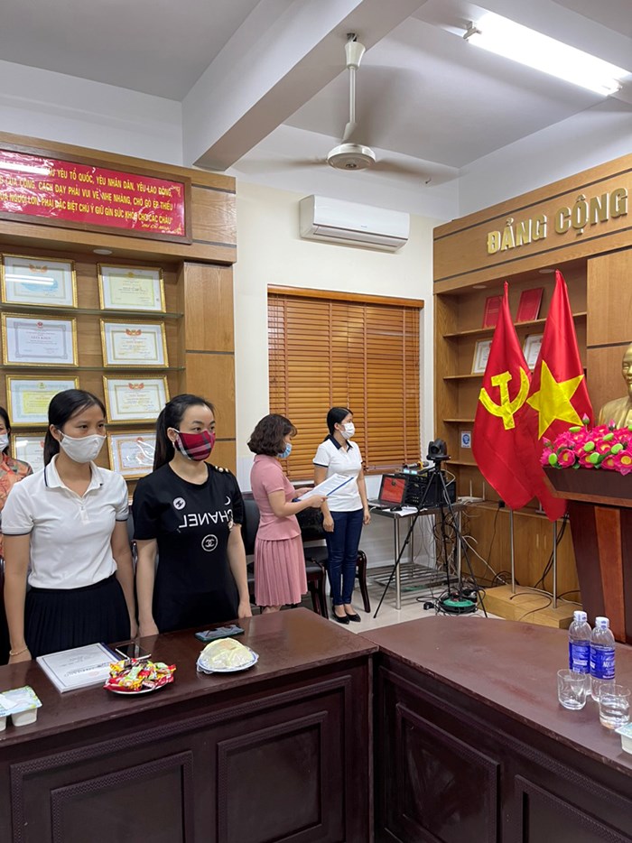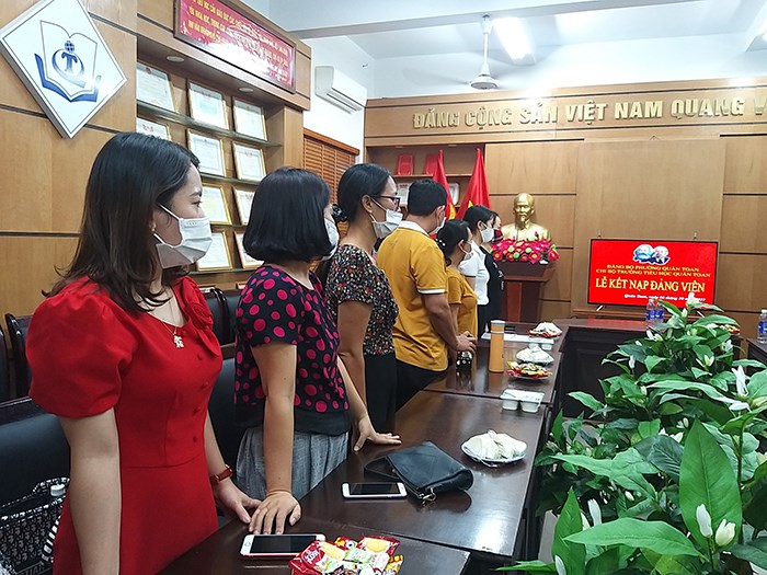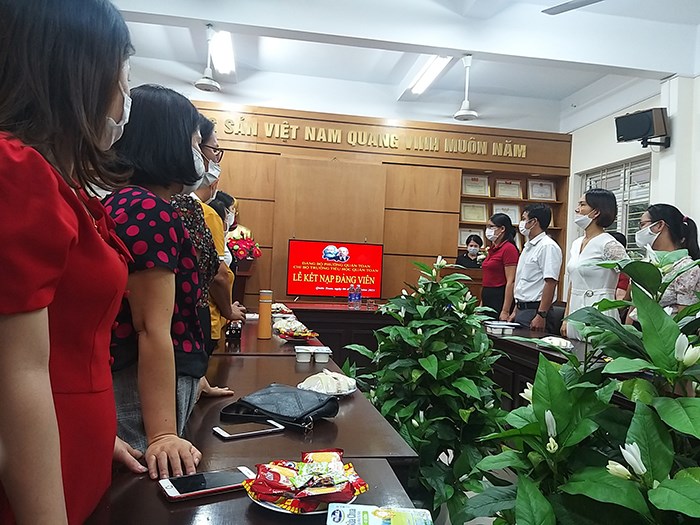 Chiều ngày 06 tháng 10 năm 2021 Chi bộ Tiểu học Quán Toan tổ chức Lễ kết nạp Đảng viên mới cho quần chúng ưu tú đồng chí Lê Thị Thanh Thiền - Giáo viên.