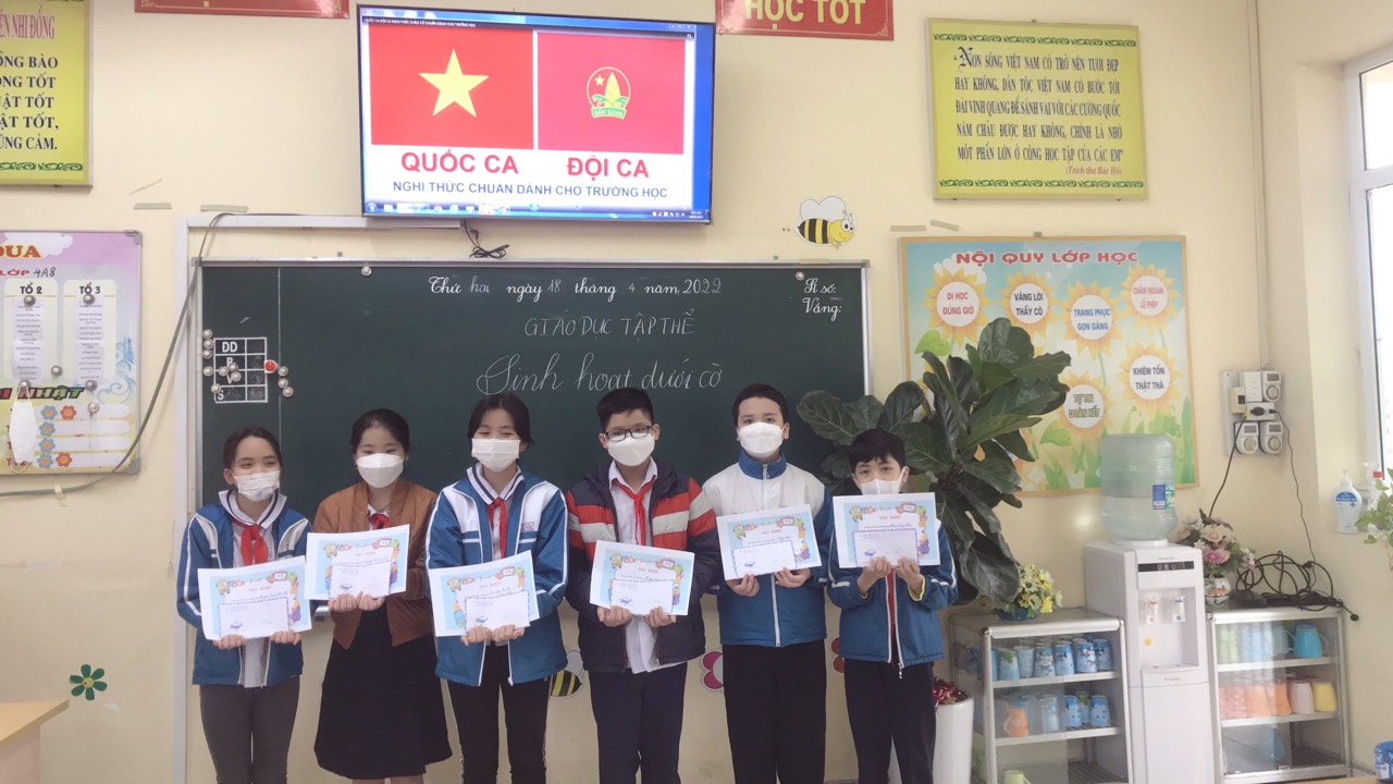 Thực hiện sinh hoạt Đội dưới cờ với chủ đề "Mỗi tuần một câu chuyên đẹp, một cuốn sách hay, một tấm gương sáng" tại các lớp học. Các lớp đã thực hiện tiết sinh hoạt dưới cờ theo chủ đề, GVCN đã tuyên dương những bạn học sinh có ý thức trong học tập tốt và lao động chăm trong tuần. Giới thiệu những tấm gương đội viên tiêu biểu trong liên đội.