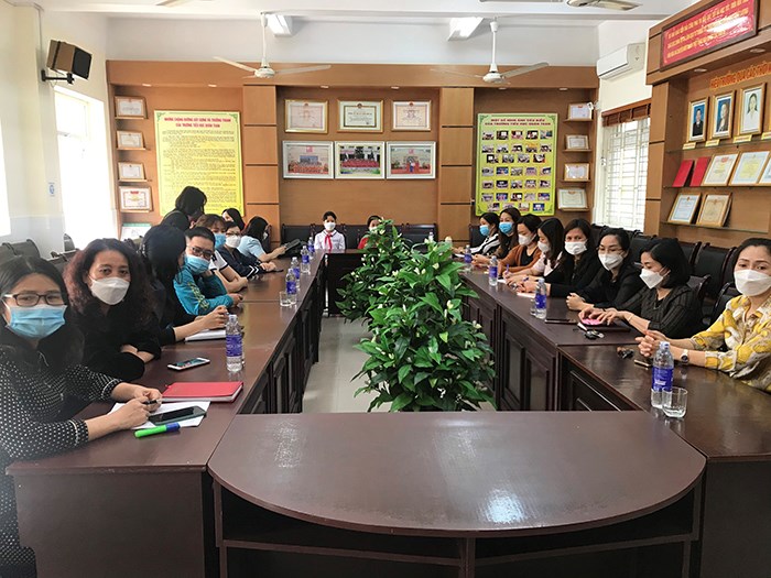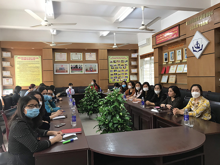 Tại điểm cầu trường Tiểu học Quán Toan với sự tham gia của BGH nhà trường, giáo viên chủ nhiệm, Trưởng ban đại diện CMHS cùng với sự tham gia của các BGH, giáo viên các trường Mầm non, THCS trên địa bàn phường Quán Toan.