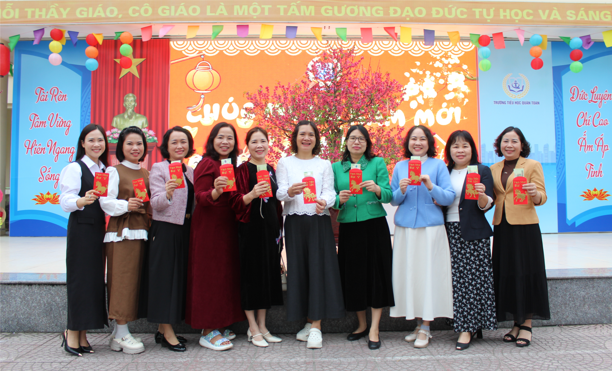 viên trưởng Tiểu học Quán Toan đã gặp mặt đầu xuân trong không khí ấm áp,
