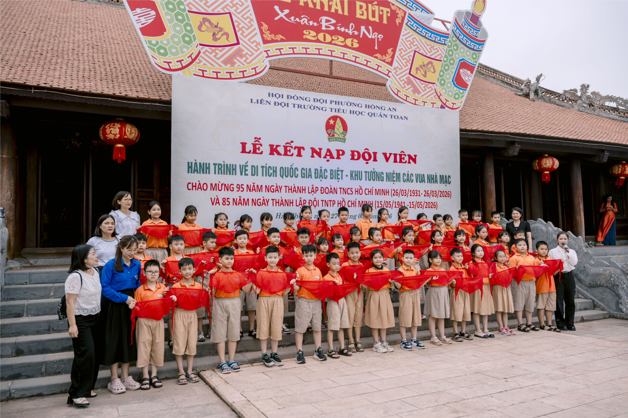 đội Tiểu học Quán Toan tổ chức Lễ kết nạp Đội cho 160 em học sinh tiêu biểu của