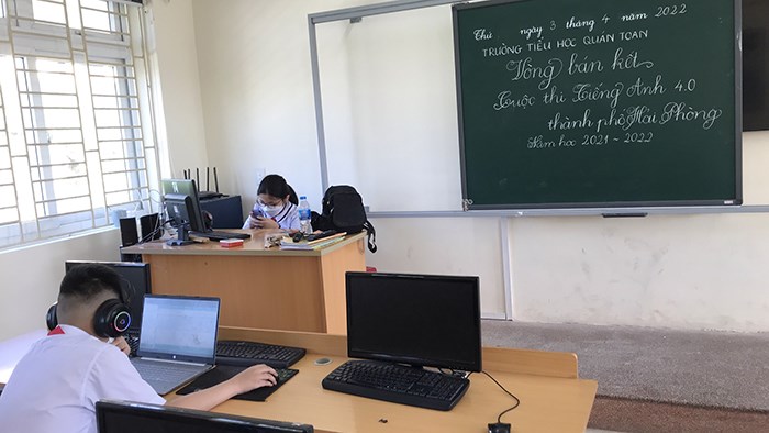 Sáng nay, ngày 03/04/2022 tại địa điểm phòng Tin học trường Tiểu học Quán Toan những em học sinh của nhà trường đã vượt qua vòng loại cuộc thi Tiếng Anh 4.0 tiếp tục thực hiện vòng thi bán kết với hình thức thi trên ứng dụng Easy Class.