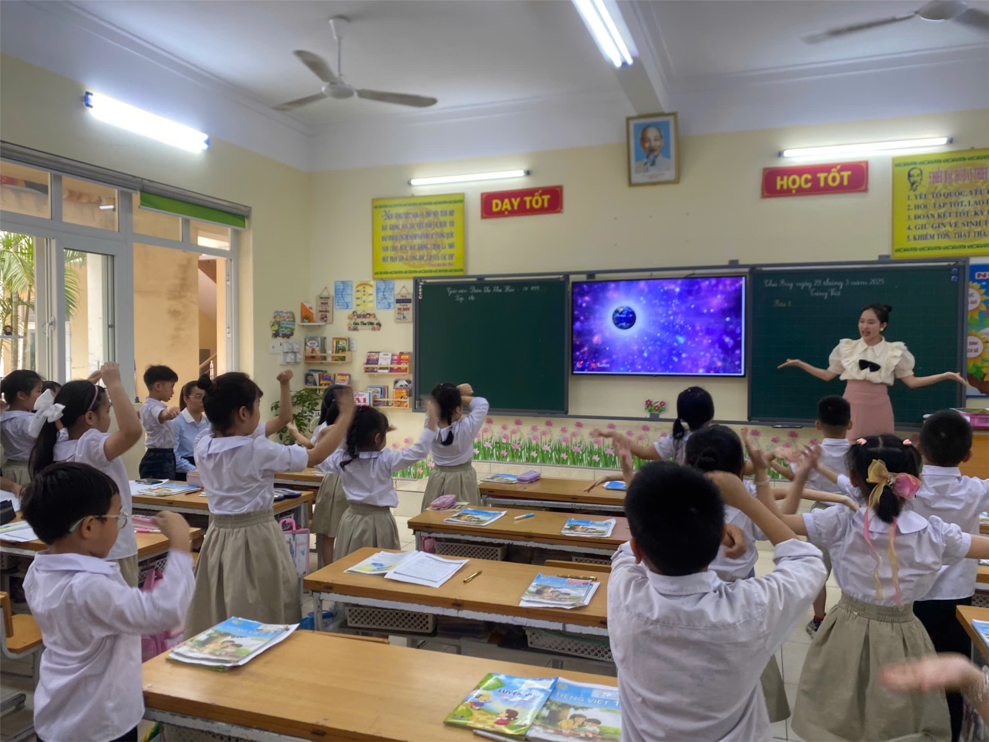Trong tiết dạy Tiếng Việt cô giáo đã khéo léo lồng