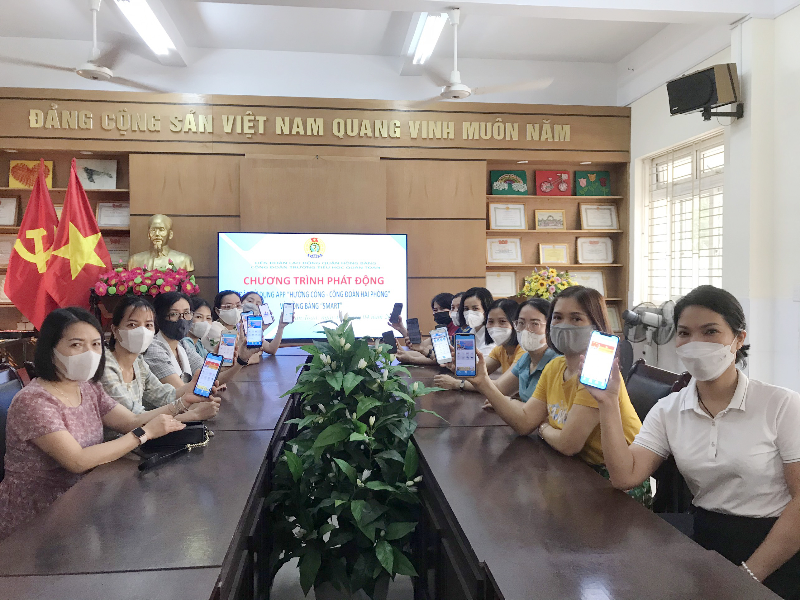 Thực hiện sự chỉ đạo của Liên đoàn Lao động quận Hồng Bàng về việc tổ chức các hoạt động Tháng Công nhân năm 2023 và chào mừng Đại hội Công đoàn quận lần thứ X, sáng 06/04/2023, Công đoàn trường TH Quán Toan đã tổ chức Chương trình phát động cài đặt, sử dụng App “ Hướng công- Công đoàn Hải Phòng” và “Hồng Bàng Smart” tới toàn thể đoàn viên, giáo viên trong trường.