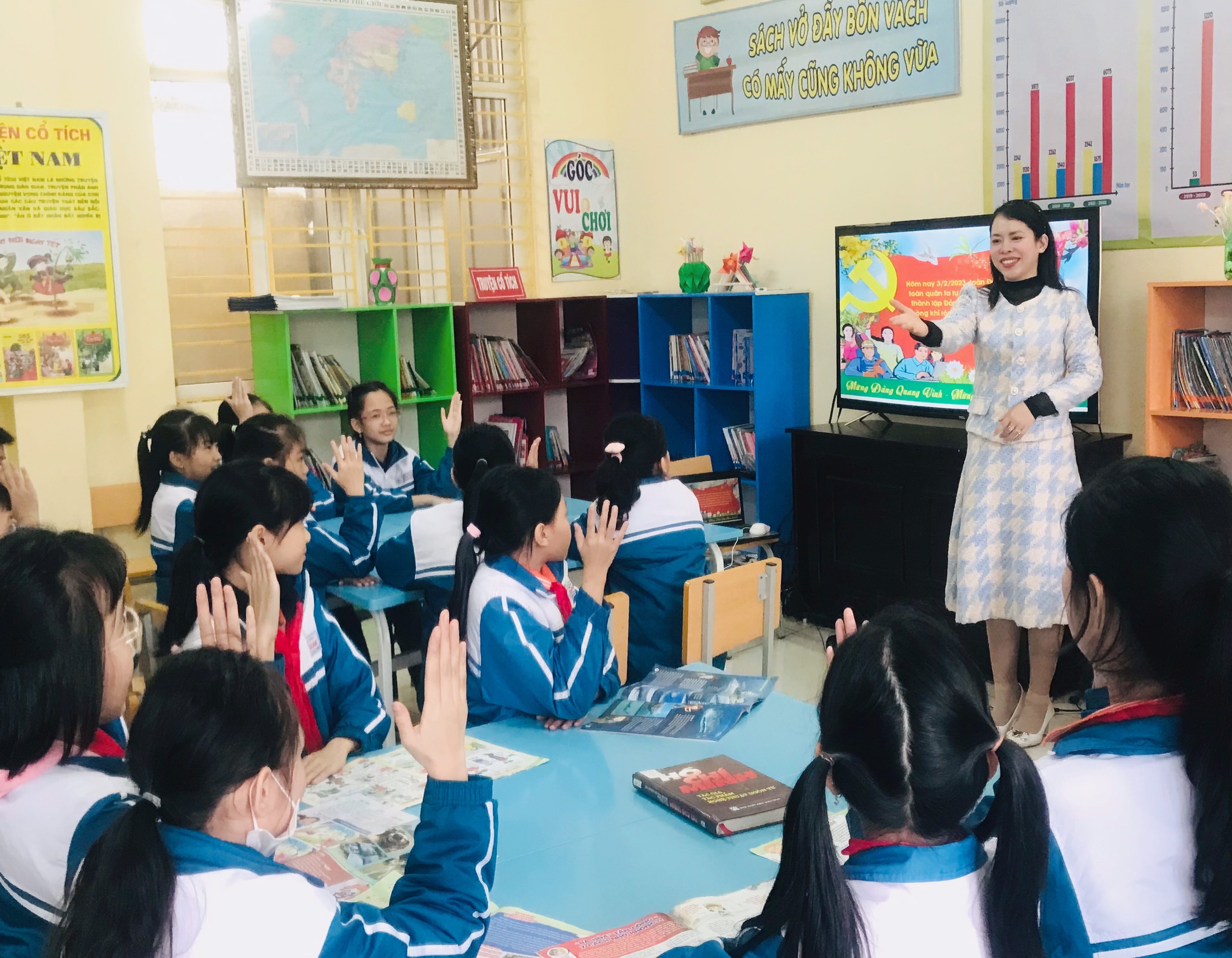 trường luôn khuyến khích các em tham gia đọc sách tại thư viện và sinh hoạt đội