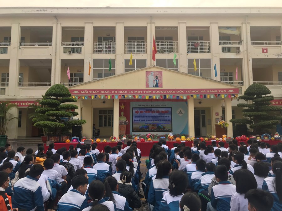 Tại buổi sinh hoạt dưới cờ tháng 3 các em học