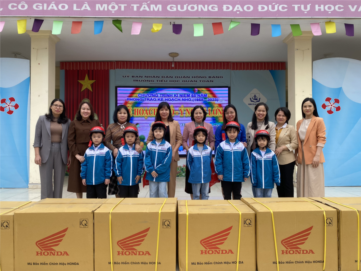 trao tặng mũ bảo hiểm cho học sinh lớp 1 năm 2023.