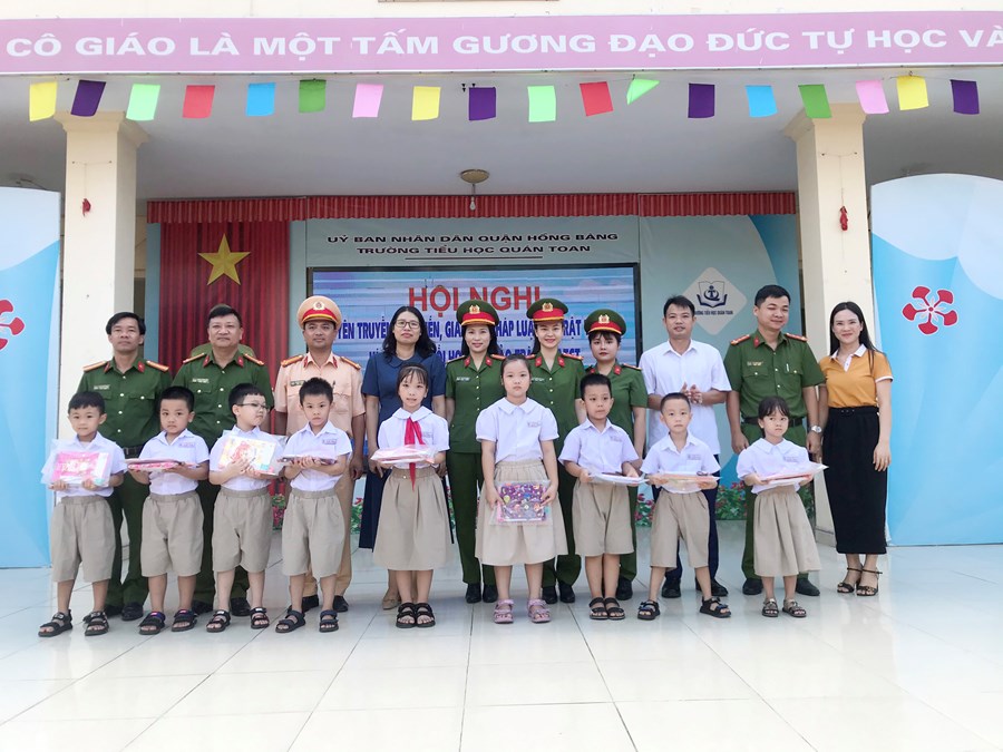 nay, ngày 25 tháng 9 năm 2023 trường Tiểu học Quán Toan phối hợp với công an phường Quán Toan tổ chức Hội nghị tuyên truyền, phổ biến, giáo dục pháp luật về trật tự ATGT và ký cam kết phối hợp