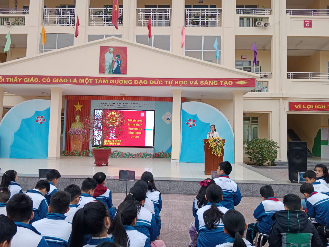 cho các em học sinh Trường Tiểu học Quán Toan về ý nghĩa của việc thành lập Đảng