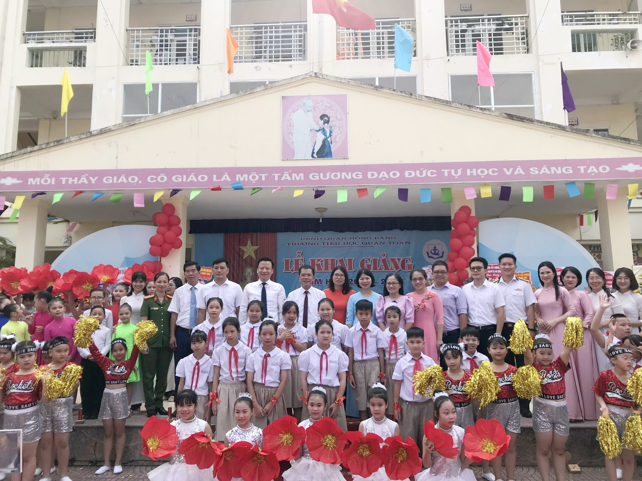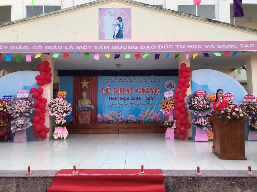 khí của ngày Khai giảng trên toàn quốc trường Tiểu học Quán Toan tổ chức buổi Lễ