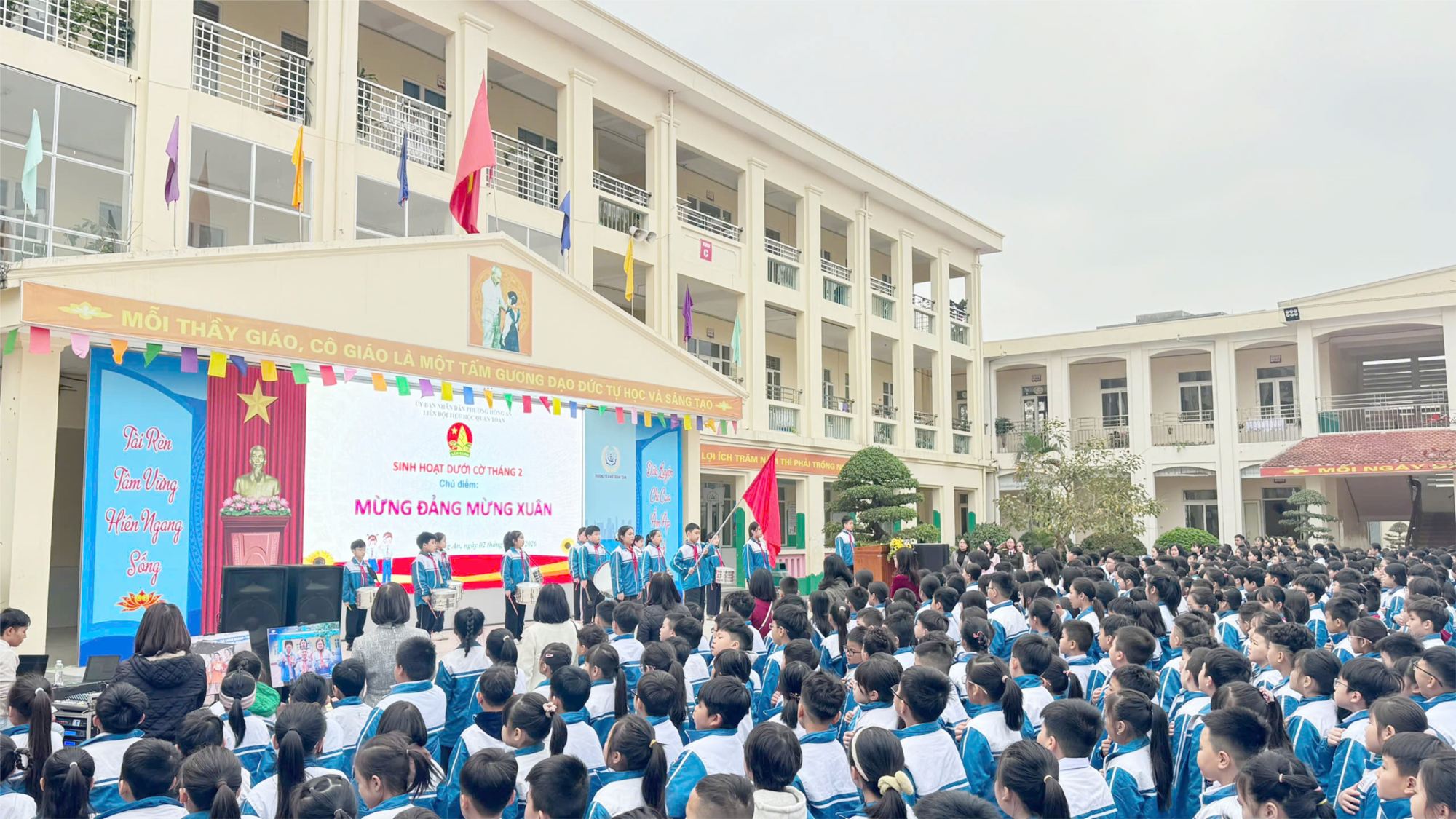 Liên đội Trường Tiểu học Quán Toan tổ chức Sinh hoạt dưới cờ tháng 2 với chủ điểm