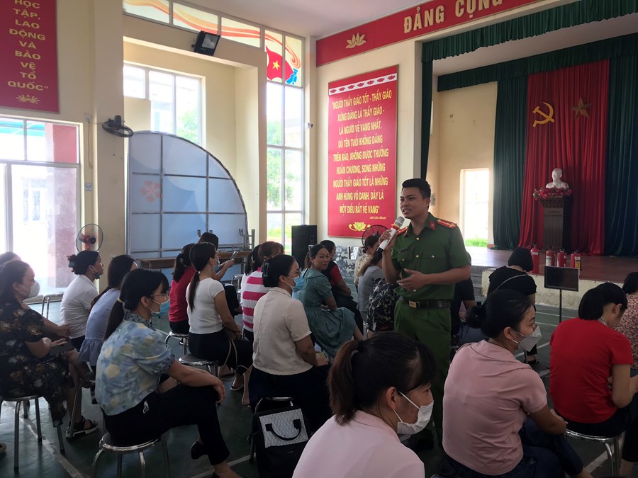 Chiều nay, ngày 08/08/2022 tại nhà Đa Năng trường Tiểu học Quán Toan các đ/c công an PCCC Quận Hồng Bàng tổ chức tập huấn các kỹ năng cứu hộ, cứu nạn và phòng cháy chữa cháy cho tất cả các cán bộ, giáo viên, nhân viên của các nhà trường THCS, Tiểu học, mầm non trong địa bàn phường Quán Toan.