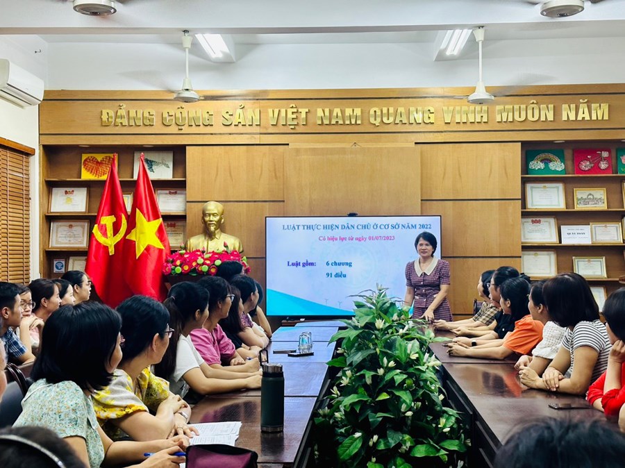 - Tuyên truyền, phổ biến trực tiếp cho CBGV, NV, HS trong các buổi họp hội đồng; Các buổi học bồi dưỡng; các buổi chào cờ; phát thanh măng non; lồng ghép trong các tiết Hoạt động
