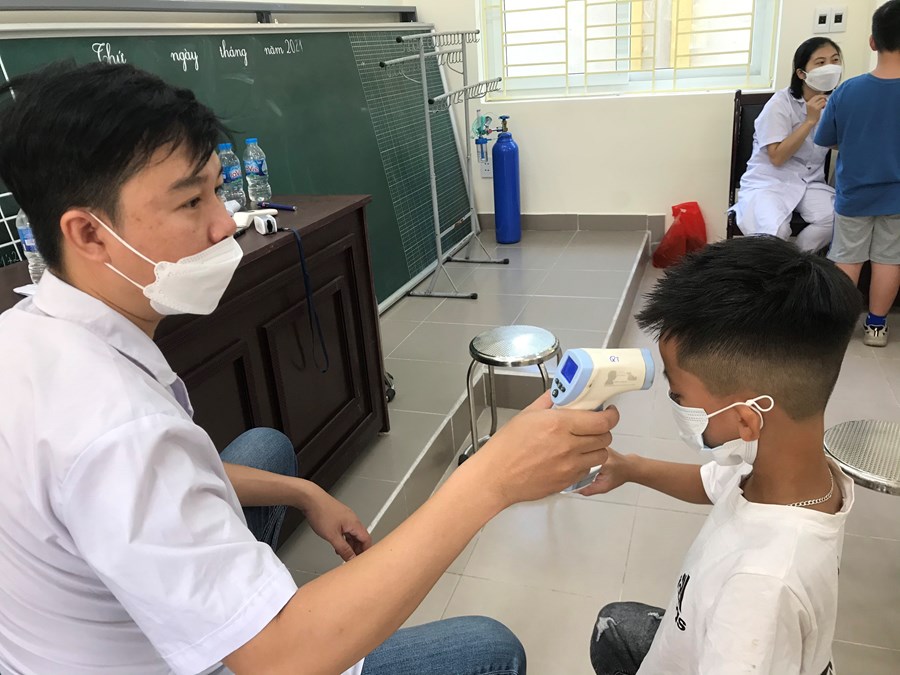 Trong đợt 1 này nhà trường tiêm được gần 400 học sinh, các em học sinh còn lại do trùng vào dịp nghỉ hè nên nhiều em đi du lịch cùng gia đình và nhiều học sinh chưa khỏi covid được 3 tháng hay bị ốm mệt trước ngày tiêm. Các em học sinh này sẽ tiêm vào đợt 2 khi có kế hoạch cụ thể.