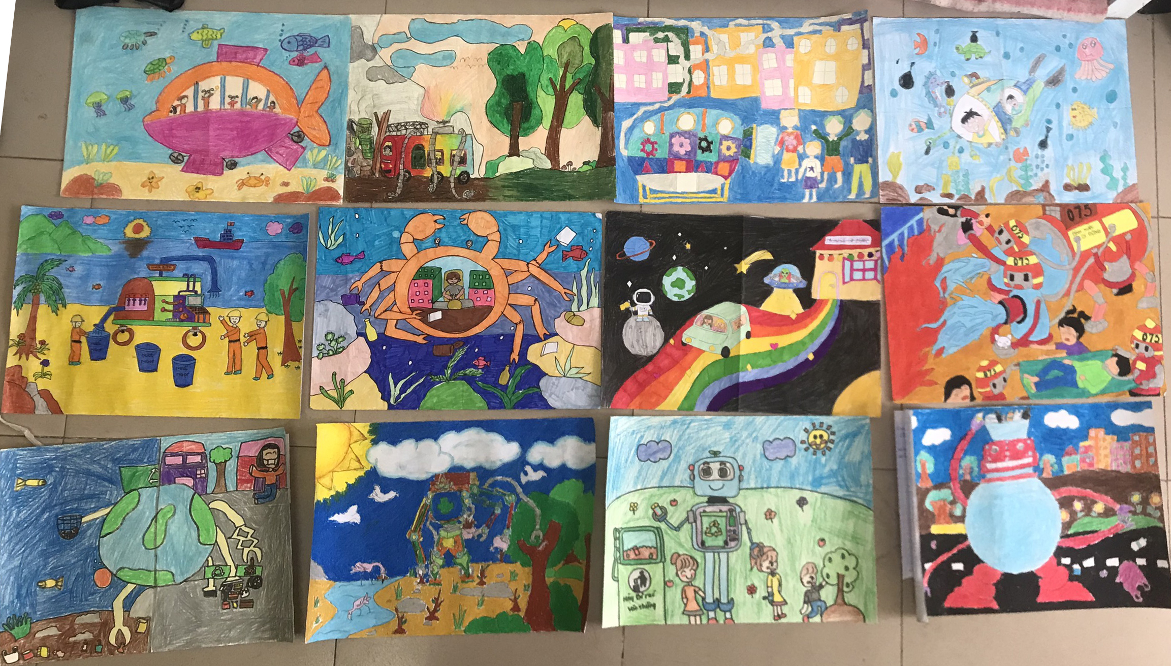tranh các em nộp dự thi đều được nhà trường gửi cho BTC hội thi qua đường bưu điện