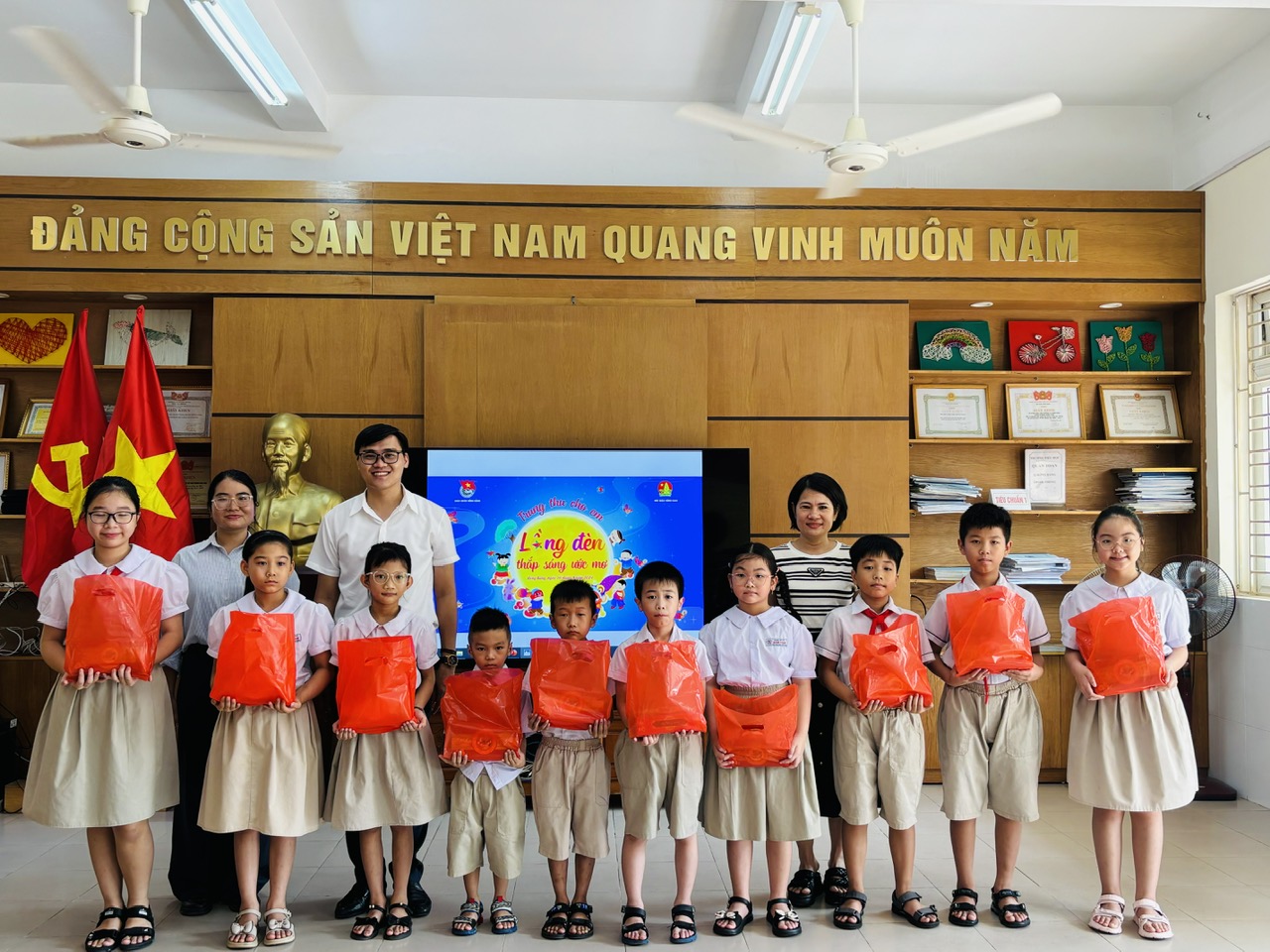 2024 nhà trường đã đón nhận quà trung thu tặng cho các em học sinh có hoàn cảnh khó khăn