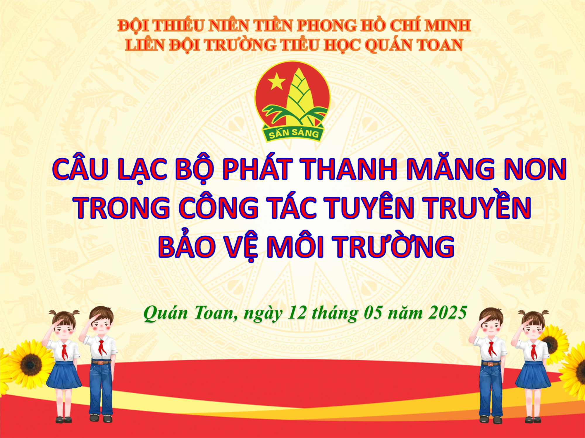 Thực hiện chương trình công tác đội và phong trào thiếu nhi năm học 2024-2025, liên đội TH Quán Toan đã triển khai đến các lớp về việc giữ gìn và bảo vệ môi trường. Các em hs của liên đội tích cực tham gia câc hoạt động để giữ gìn trường lớp xanh - sạch - đẹp : chăm sóc bảo vệ cây xanh, quét trường lớp, tham gia công trình măng non Vườn hoa xanh .... với thông điệp: Hãy chung tay xây dựng thành phố xanh.