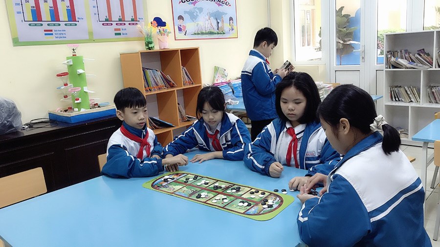 còn được trải nghiệm các trò chơi vui trong tiết đọc thư viện.