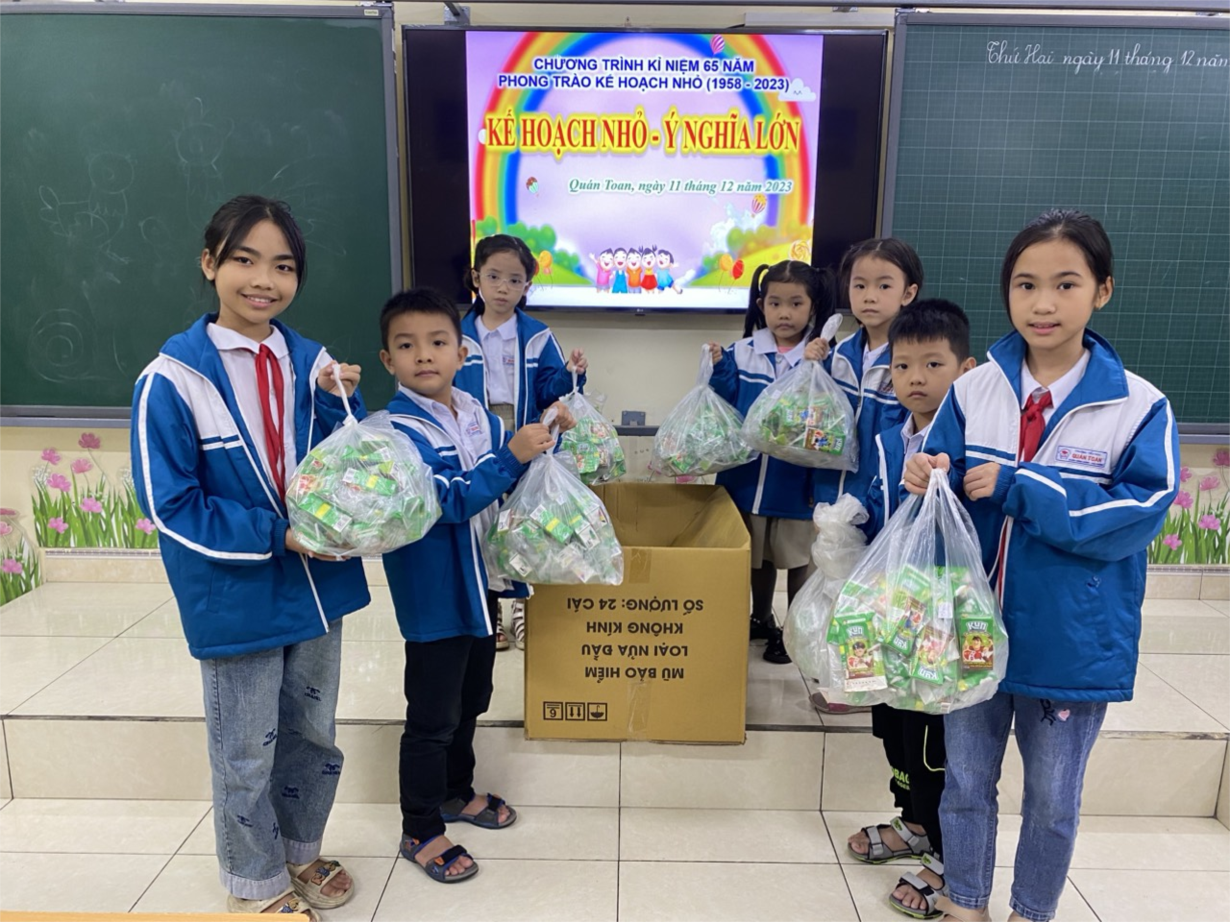 báo … được các em học sinh nộp về nhà trường để ủng hộ cho phong trào “Kế hoạch nhỏ - Ý nghĩa lớn” của Quận Hồng Bàng.