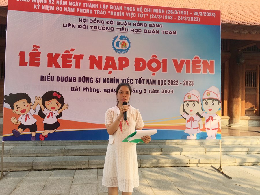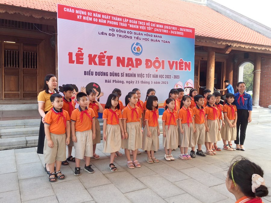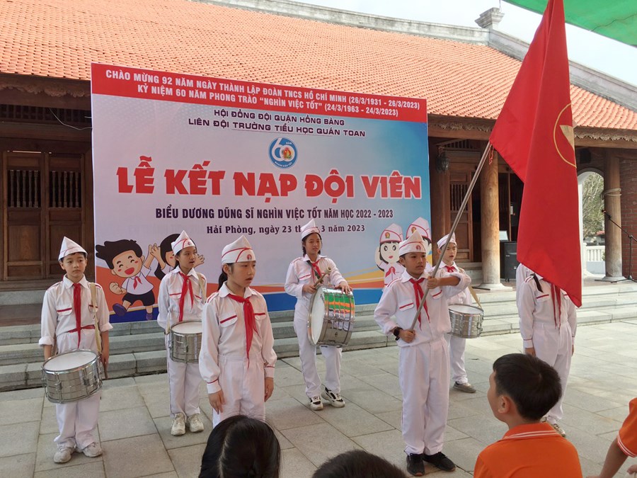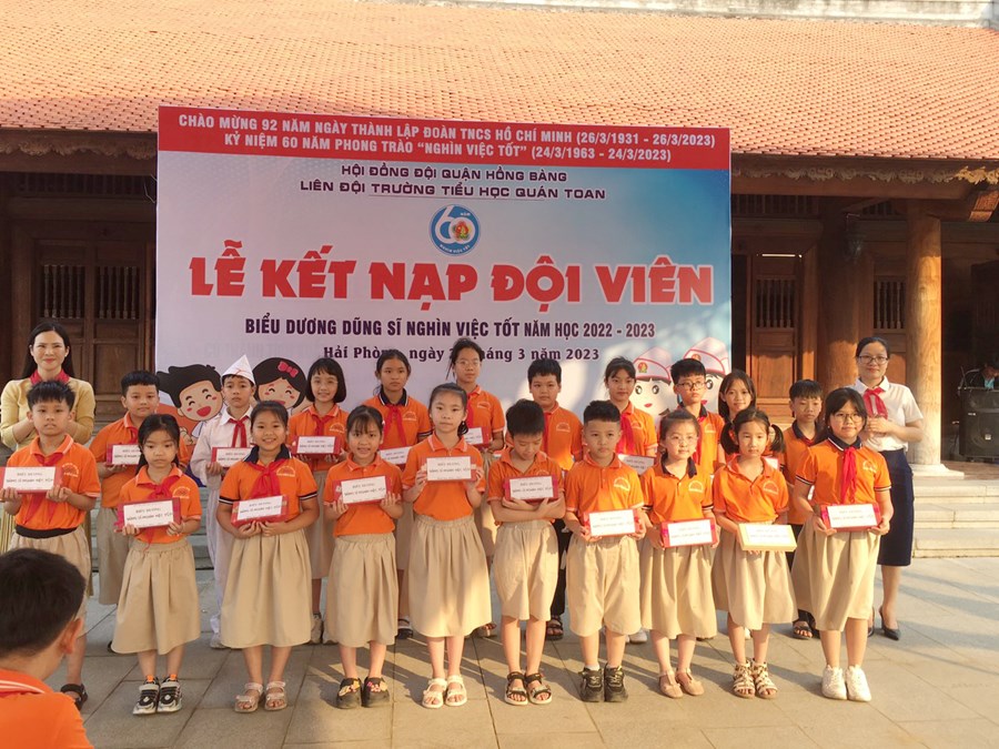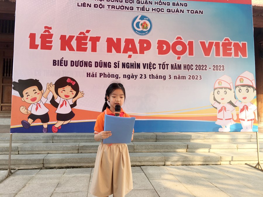 23/03/2023 Liên đội Tiểu học Quán Toan tổ chức lễ kết nạp Đội viên cho các em