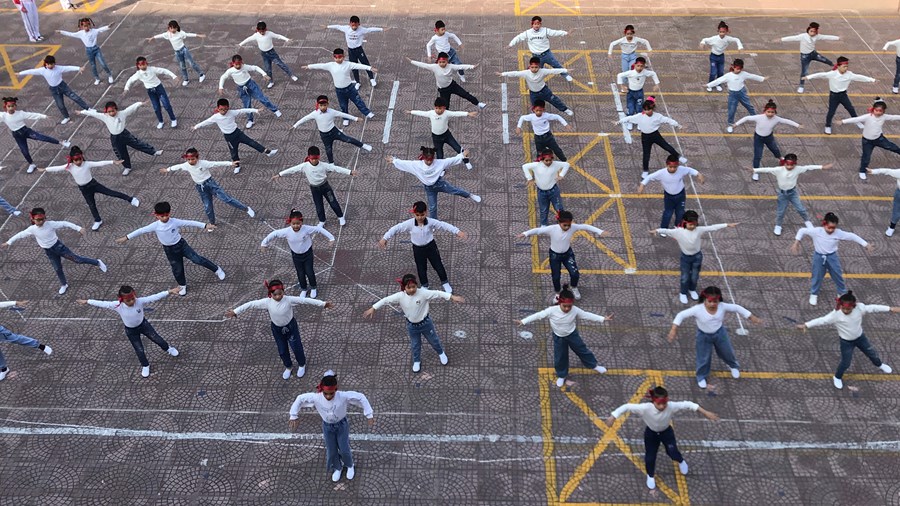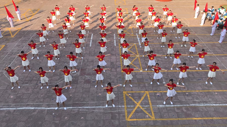 hứng với các mà đồng diễn của các em học sinh các khối lớp trong nhà trường cùng