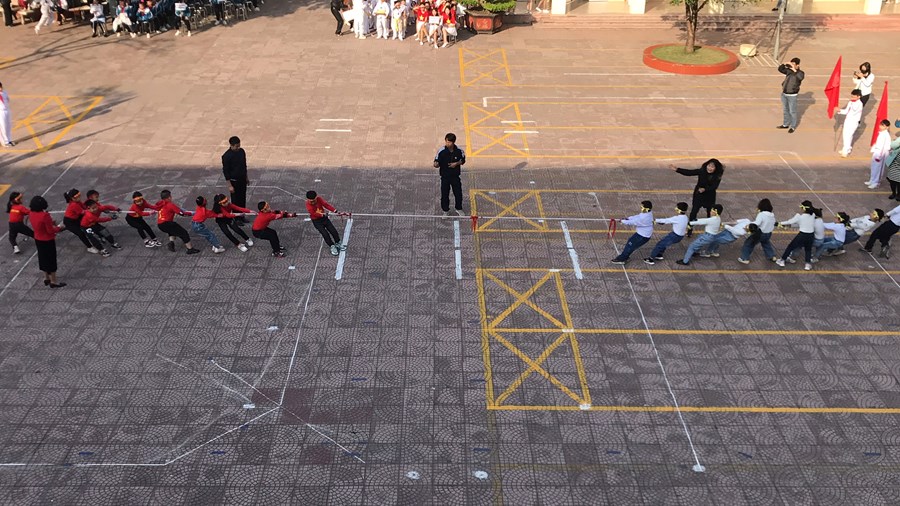với đó là những màn thi nhày bao bố và kéo co đầy hứng khởi của các em học sinh