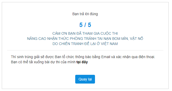 Đây là lần thứ ba VNMAC tổ chức cuộc thi trực tuyến “Nâng cao nhận thức phòng tránh tai nạn bom mìn, vật nổ do chiến tranh để lại ở Việt Nam”.